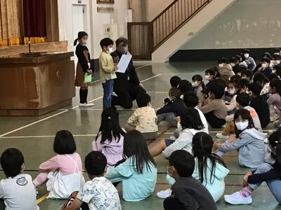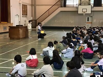 また,金管バンド部長からは「マーチングバンド全国大会に参加してきました。皆さん,応援ありがとうございました。」と全校児童に向けて挨拶がありました。