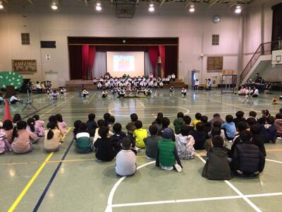 全校の子供たちが,全国大会出場レベルのマーチングを目と耳と全身で感じるとともに,金管バンドのメンバーは友達や先生に練習の成果を見てもらった嬉しさを感じていたようです。