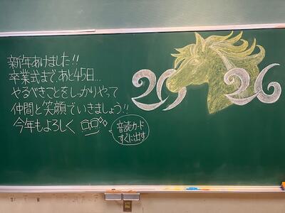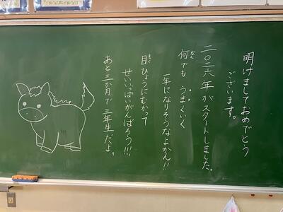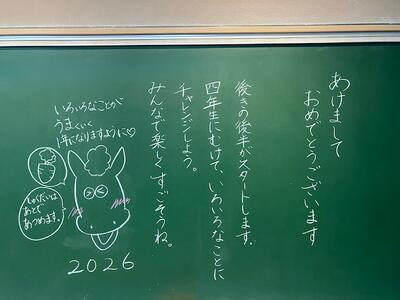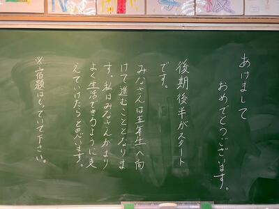 また、各教室の黒板には、子どもたちを迎えるために先生方が心を込めて書いたメッセージが並び、登校してきた子どもたちは、笑顔で読んでいて、教室は温かな雰囲気に包まれていました。後期後半も、引き続きご支援とご協力をよろしくお願いいたします。