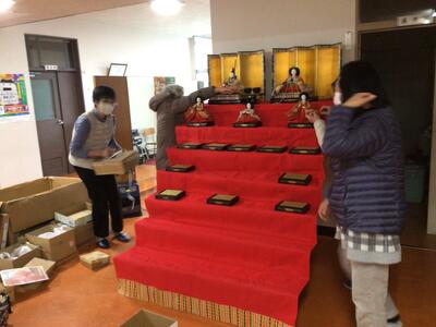 2月5日(木)、丘小サポーターの皆様にお集まりいただき、ひな人形の飾り付けを行っていただきました。一つ一つを丁寧に飾ってくださったおかげで、華やかな7段飾りが職員室前に美しく並んでいます。ご来校の際には、ぜひ季節の彩りとしてご覧ください。サポーターの皆様、温かなご協力をありがとうございました。